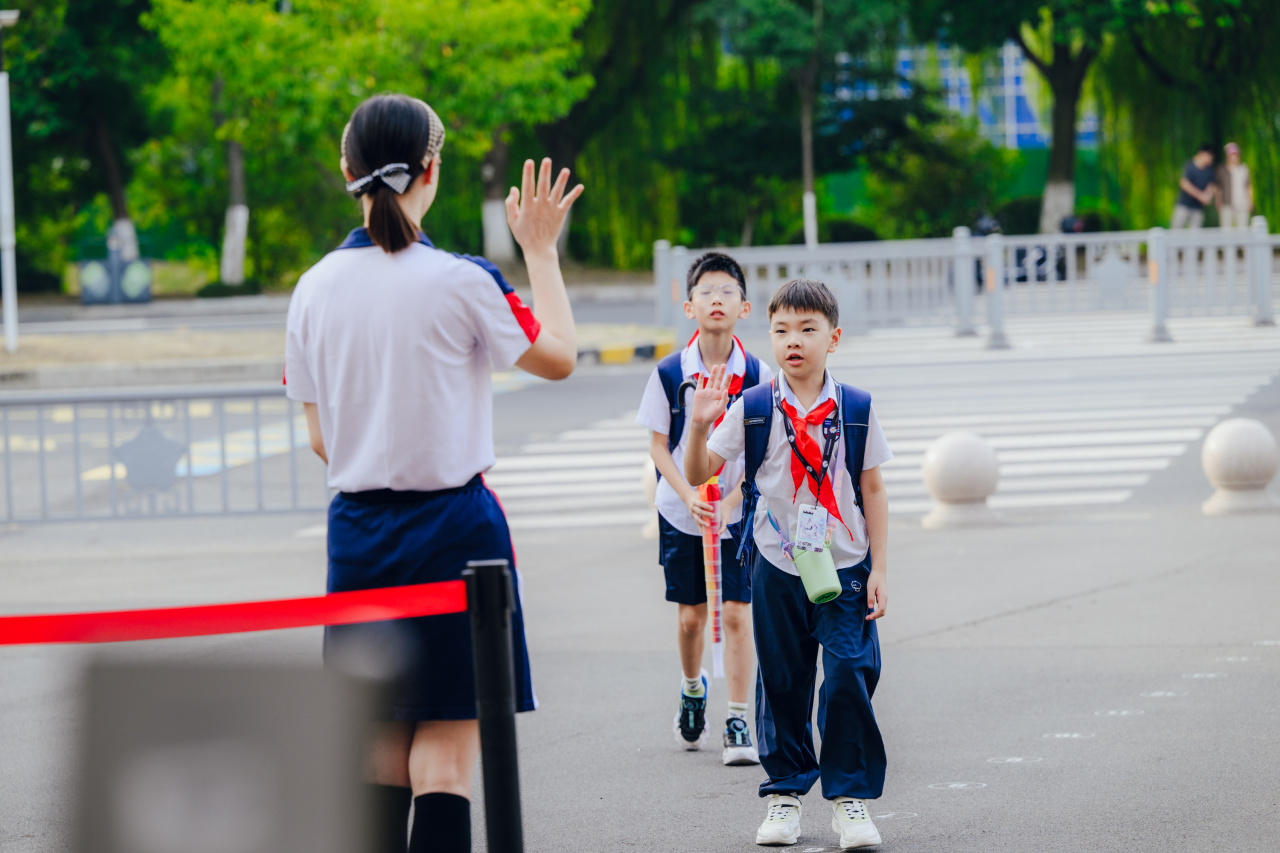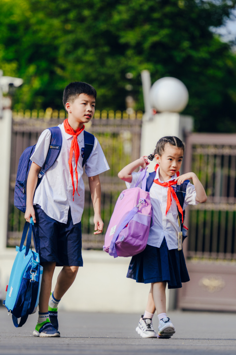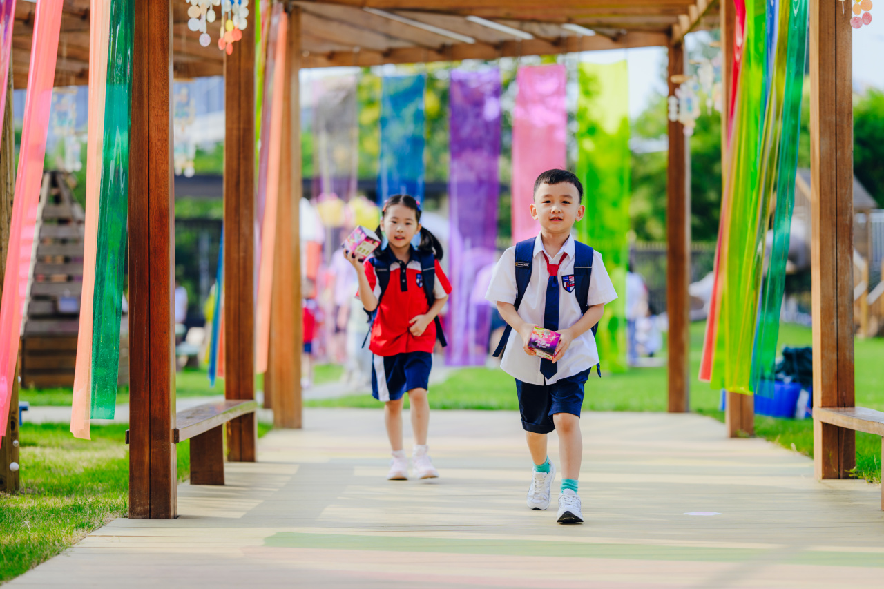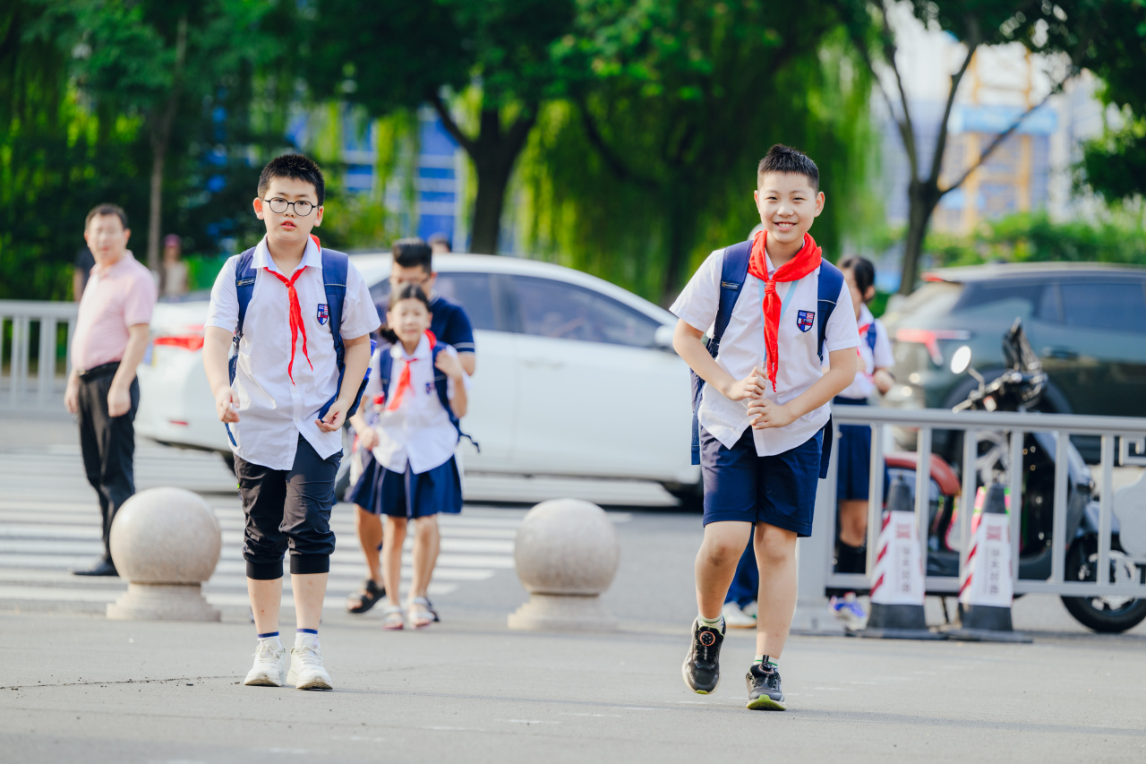 小学部的校园率先热闹起来