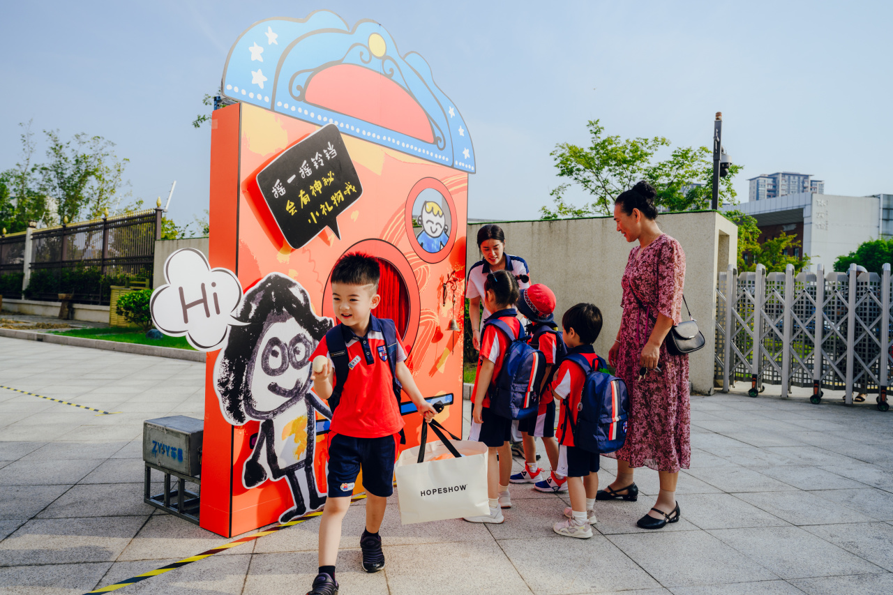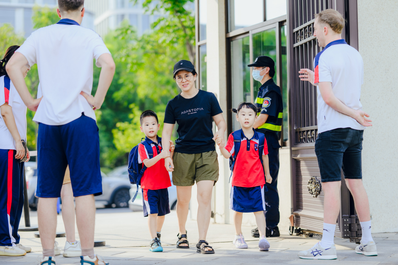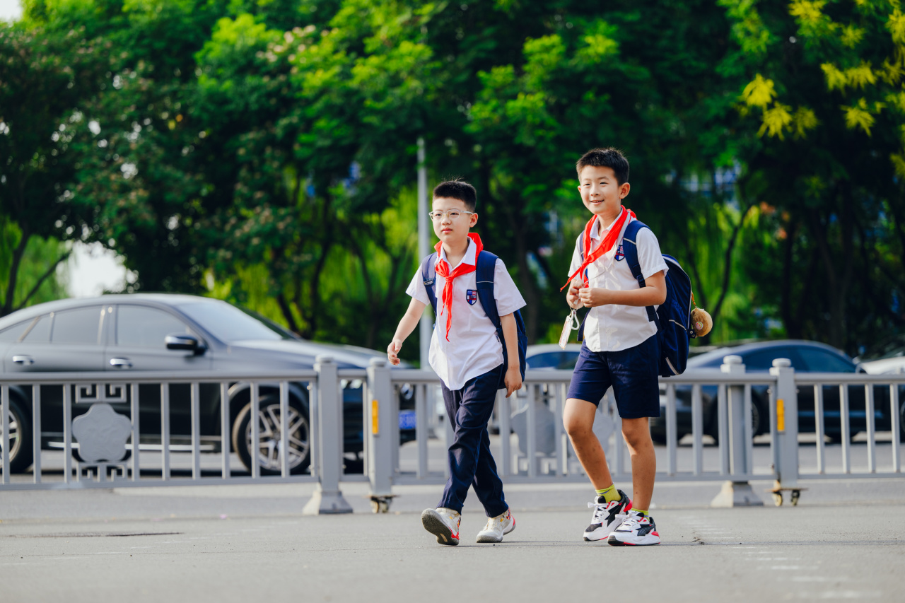 小学部的校园率先热闹起来