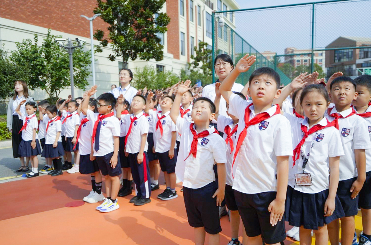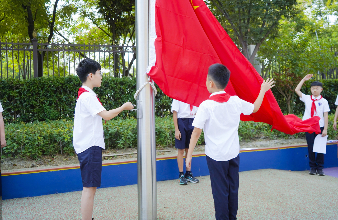 这一抹神圣的颜色飘扬在学校的上空