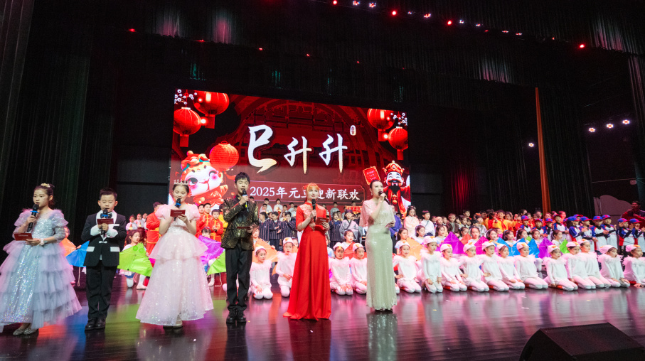 年味十分浓郁的小学部“春晚”一向注重团团圆圆,潘理事长来了,家长们来了,后勤保洁阿姨们也来了。多才多艺的家长还作为特邀嘉宾,表演了个人才艺秀和亲子热舞等多个节目。不仅如此,作为节目压轴的神秘彩蛋,小学部王新刚校长再次化身“黑衣人”,和老师们同台劲舞,台上台下顿时一片欢腾,将华天的阖家文化展现得淋漓尽致。