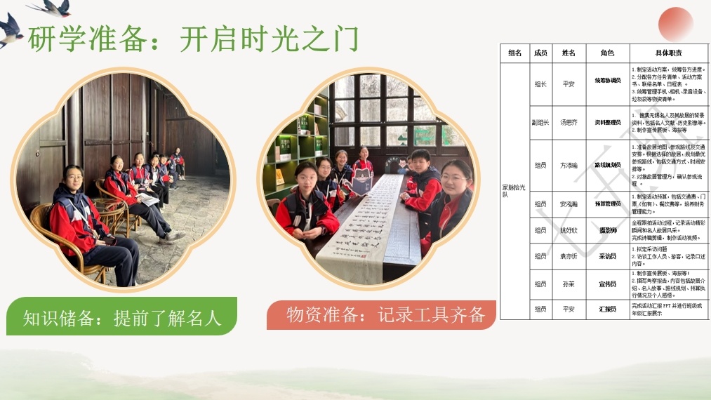 活动前期,各小组通过线上搜索调研系统梳理了无锡名人的人生轨迹与故居沿革,科学规划寻访路线并制定详细预算清单,准备充分。