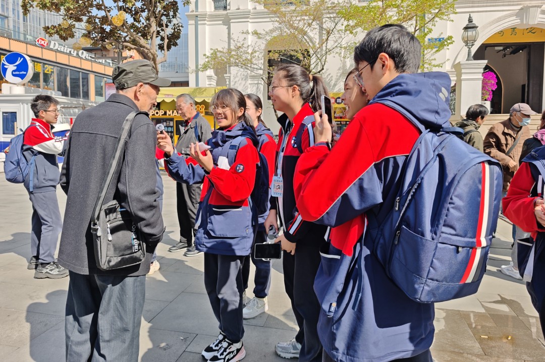 在实地考察中,同学们近距离观察故居陈设,多维感知历史现场,并分工协作,拍摄建筑细节、聆听工作人员讲解、随机采访游客、记录研学体验,收集独特的历史记忆。