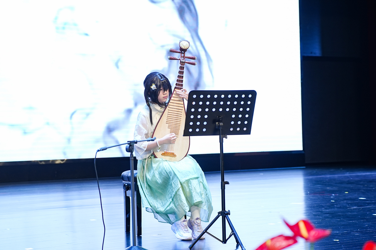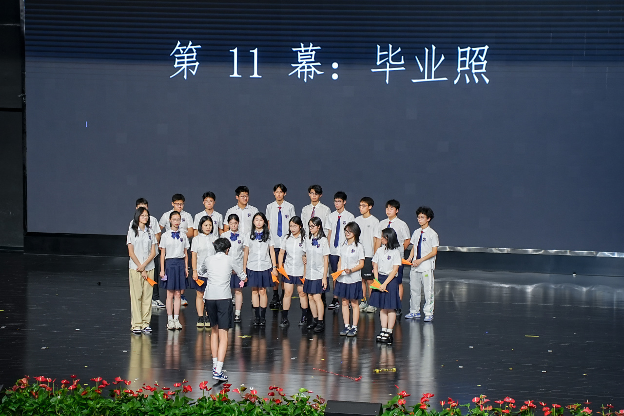 毕业典礼在小合唱《闪耀》清亮的歌声中拉开帷幕。优美的旋律在报告厅上空盘旋,像青春一样纯净透亮。随后的独舞如惊鸿一瞥,用身体诉说成长的故事,每一个旋转都如振翅欲飞的蝴蝶。古筝、竹笛、琵琶……乐器串烧流淌着少年们各异的心绪,或激越,或沉静,汇成青春的和弦。