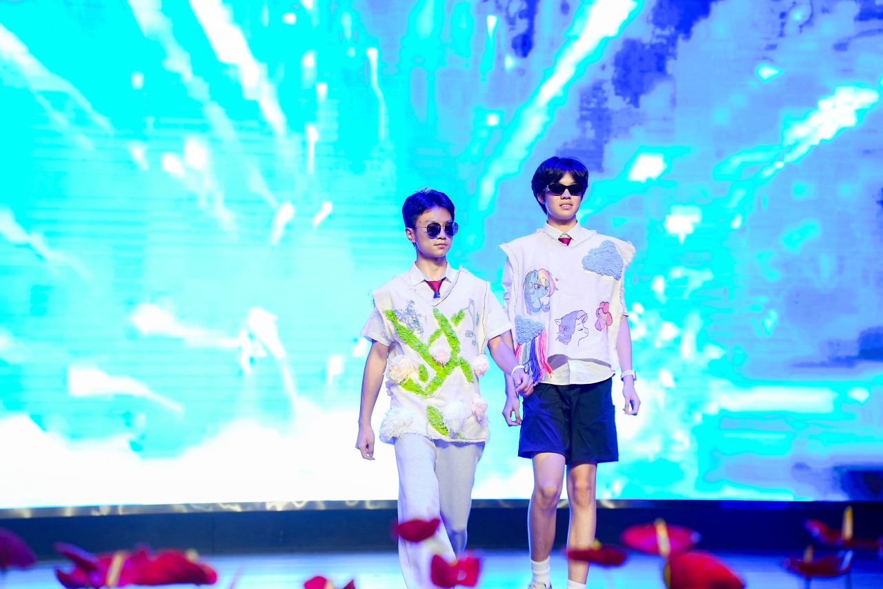 最令人动容的是同学们在劳技课上亲手设计制作的衣服,师生同台走秀熠熠生辉——那是时光与巧思凝结的勋章,无声诉说着成长路上的探索与热爱。