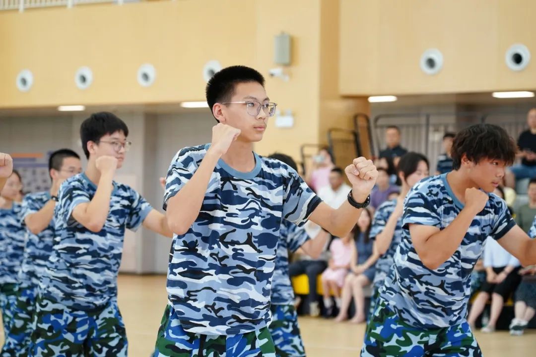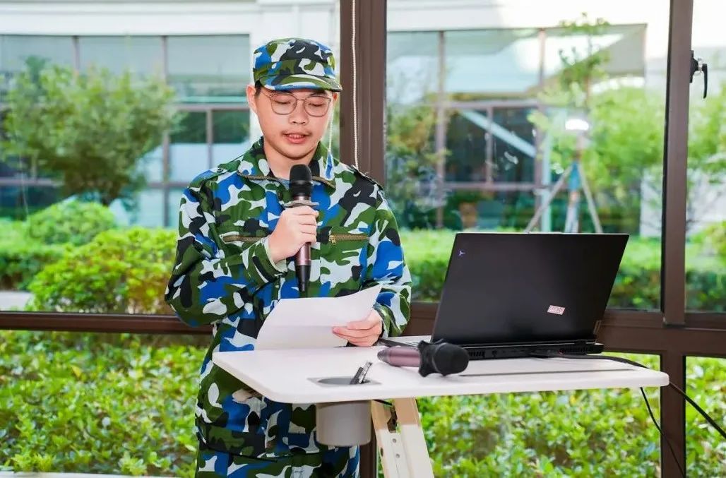 高中部德育主任温福东作军训总结发言。“风吹日晒均是磨练,逆境顺境皆为人生”,温主任希望大家在高中生涯中,始终怀揣突破极限、超越自我的心态,以锲而不舍的努力勇敢逐梦,在华天成就自己最亮丽的青春。