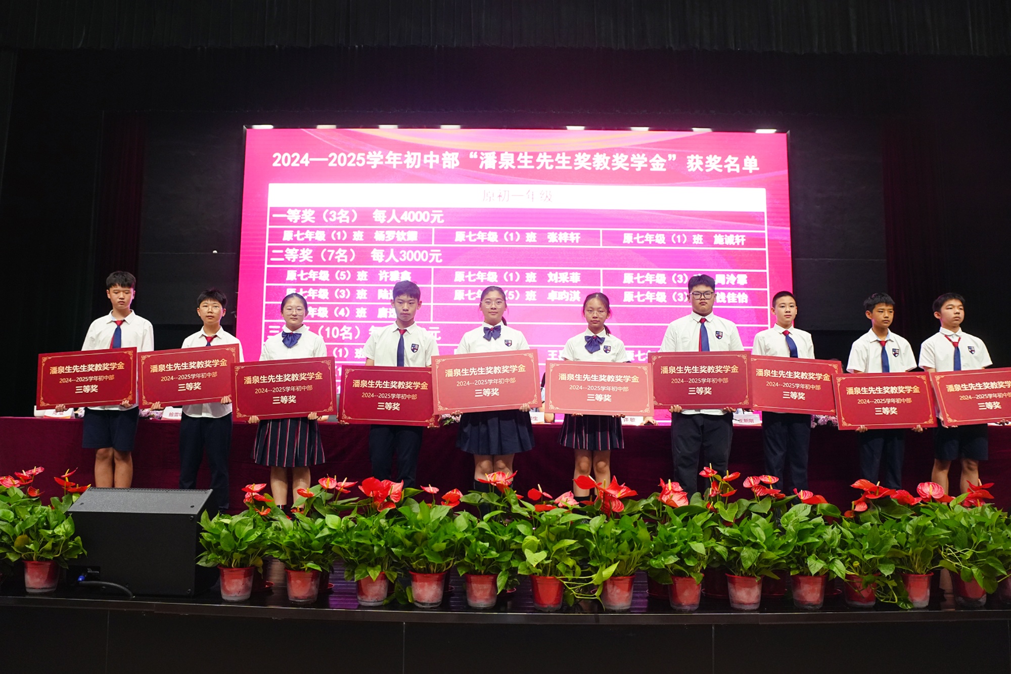 会上举行了隆重的表彰仪式,对教学及管理方面表现突出的团队、个人以及学业成绩优异的华天学子授予荣誉、颁发潘泉生先生奖教奖学金。2025届初高中毕业生、国际课程中心毕业生以及部分毕业生的家长也莅临现场。会上还宣布了2025年华天学子直升奖励。