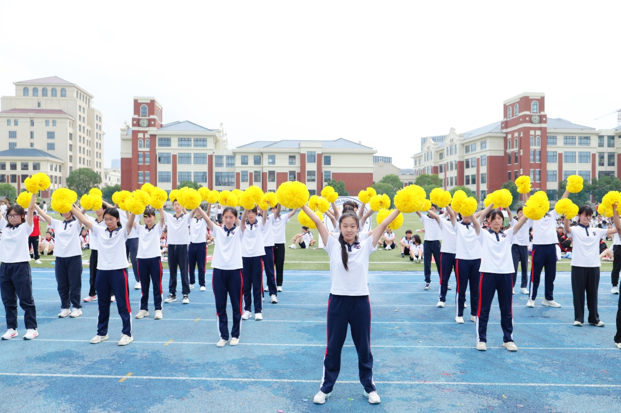 国际课程中心与初中部学子以热情洋溢的开场表演拉开序幕。国旗仪仗队庄重入场,彩旗方阵流光溢彩,鲜花队伍朝气蓬勃,各班代表队更是意气风发,踏着铿锵步伐依次亮相。