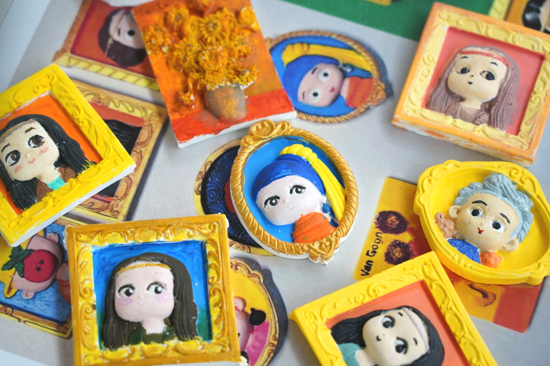 活动还特别设置创意工坊,让家长与师生们亲手为名画绘色,制作成独具特色的冰箱贴,赋予了嘉宾们满满的体验感。