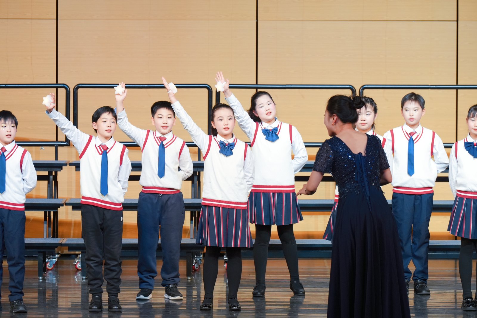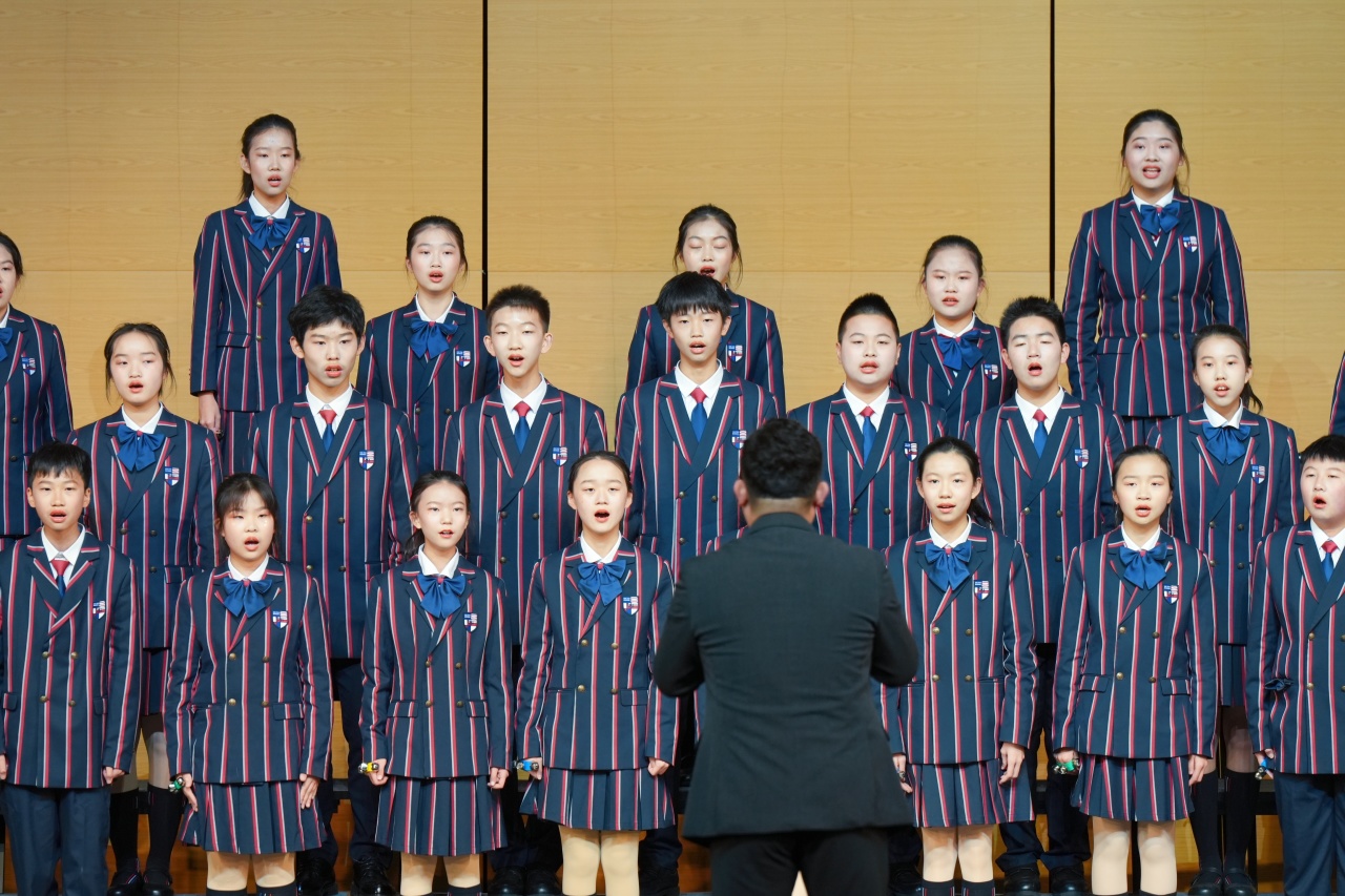 与此同时,“班班有歌声”合唱比赛再掀热潮。今年的活动分为固定曲目与自选曲目两部分,比赛过程充分体现了同学们扎实的音乐课堂基础和双语特色涵养下的国际化艺术视野。
