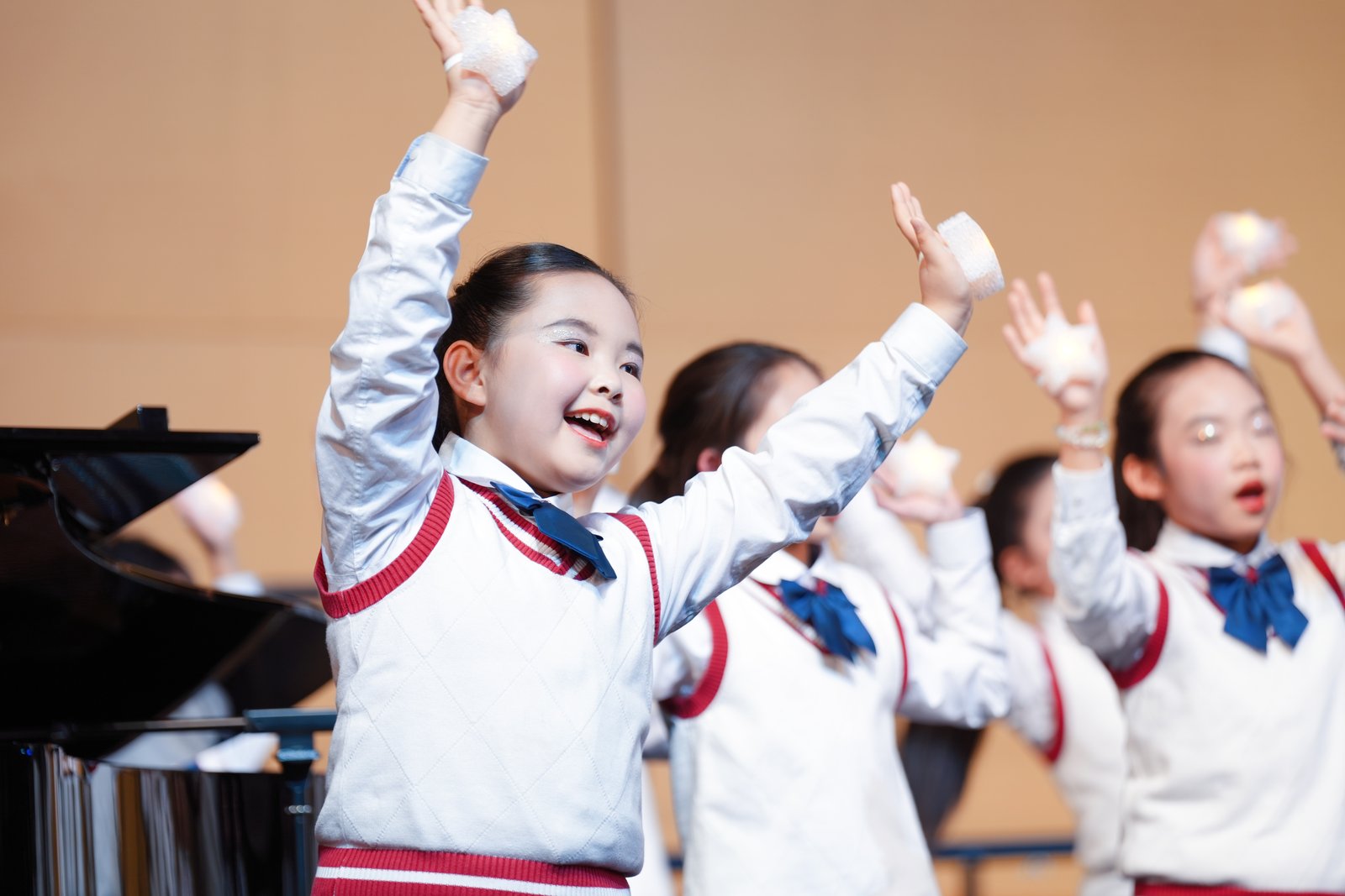 器乐的悠扬、舞蹈的动感、声乐的深情、朗诵的铿锵,在初中部精彩纷呈;高中部则由学生自主策划的“K歌大赛”点燃激情,充分展现了学生的组织力与青春活力。